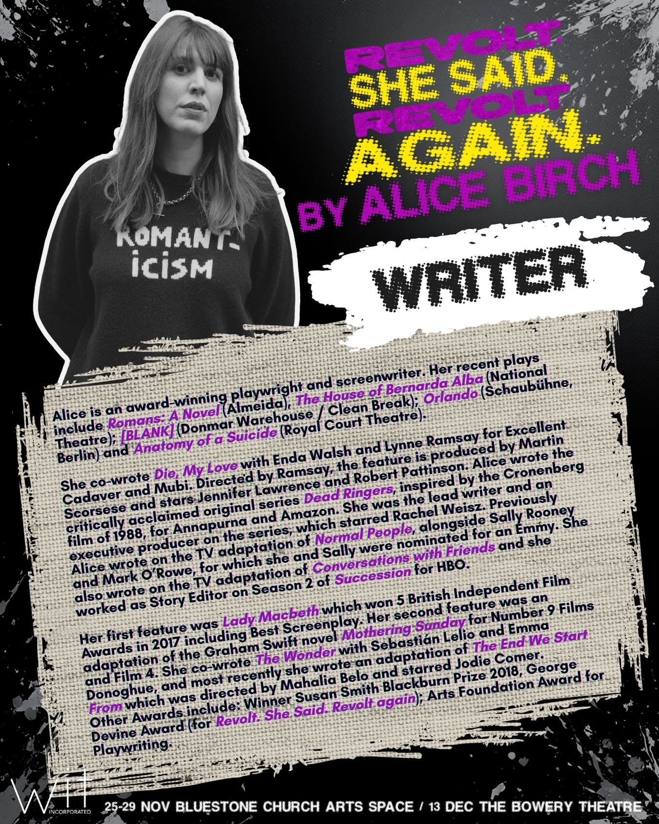 *REVOLT. SHE SAID. REVOLT AGAIN. was first produced by the Royal Shakespeare Company and premiered at The Other Place in Stratford in 2014.*